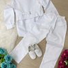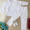 Conjunto composto por: Camisa social manga longa, gravata borboleta, calça, colete na cor branca. Demais peças ou acessórios, não inclusos. BATIZADO,DAMINHA,CASAMENTO,NOIVA,NOIVINHA,DAMA DE HONRA,FLORISTA,DAMA,PAGEM,NOIVINHO