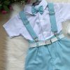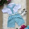 Este conjunto social infantil é a escolha perfeita para deixar os pequenos elegantes e confortáveis em eventos como casamentos, batizados, aniversários, formaturas e cerimônias em geral. Com um visual sofisticado, ele é ideal para quem busca estilo com praticidade. Detalhes do Produto: Camisa social branca de manga curta, confeccionada em microfibra 100% poliéster, com toque macio e caimento leve. Short azul bebe em linho 70% poliéster/16% viscose/11% linho/3% algodão, com acabamento moderno na barra dobrada. Acompanha gravata borboleta azul bebe, suspensório azul bebe com regulagem e cinto ajustável branco com fivela metálica. Itens Inclusos:CamisaShortGravata borboletaSuspensórioCinto Calçado não incluso – vendido separadamente. Disponivel em nosso site na categoria calçados meninosAs tonalidades das peças podem variar de acordo com as configurações de tela do seu dispositivo.Para garantir o ajuste ideal, consulte sempre a nossa tabela de medidas antes de finalizar a compra. As medidas podem apresentar pequenas variações conforme o lote de fabricação.