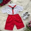 Conjunto Miss Cherry Henry Camisa Branca Suspensório Vermelho Modelo 2