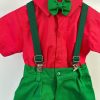 Seja o primeiro a avaliar “Conjunto Miss Cherry Henry Camisa Vermelha Suspensorio Verde”