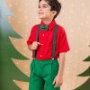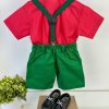 Conjunto Miss Cherry Henry Camisa Vermelha Suspensorio Verde
