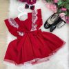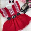 Vestido Temático Noel – Natal Infantil com Tule e Laço de Cabelo Encante neste Natal com esse vestido temático cheio de charme e delicadeza!Perfeito para fotos natalinas, confraternizações e festas de fim de ano. Detalhes do produto: Tema: Noel / Natal Cor: Vermelho com detalhes em preto e branco. Tecido: 100% Poliéster com camada de tule sobreposta, garantindo leveza e brilho suave. Acabamento: Babados duplos nos ombros com tule e renda branca. Botões decorativos frontais no estilo clássico natalino. Cinto preto com fivela prateada, inspirado no figurino do Papai Noel. Saia em tule com brilho delicado e barrado em renda branca. Acompanha: Laço de cabelo vermelho e preto com detalhe em pedraria, combinando com o vestido. Tamanho ÚnicoVeste aproximadamente de 3 meses a 2 anos, dependendo do biotipo da criança. Ideal para:Ensaios de Natal, festas temáticas, ceias em família e fotos especiais de fim de ano. Diferenciais: Acabamento delicado e cheio de brilho. Modelo confortável e fácil de vestir. Confeccionado com materiais de alta qualidade. Cuidados: Lavar à mão com sabão neutro. Não usar alvejante nem secadora. Evitar forçar ao vestir para não danificar a costura. As cores podem variar conforme a tela do dispositivo. Informações Importantes As medidas podem variar em até 2cm. Recomendamos sempre consultar a tabela de medidas antes da compra para evitar erros. Para um volume extra, indicamos o uso de saiote de armação, vendido separadamente na categoria Acessórios. Tiara e outros acessórios não acompanham o produto, mas estão disponíveis em nosso site. Calçado vendido separadamente, disponível na categoria Calçados As cores do produto podem sofrer variações de tonalidade conforme a configuração da tela do seu dispositivo.