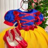 Vestido/Infantil Infantil Branca de Neve Luxo Um conto de fadas ganha vida com esse modelo deslumbrante da Branca de Neve! O vestido é inspirado na clássica Princesa Branca de Neve, trazendo todo o encanto e magia que as pequenas amam! Detalhes que encantam: Corpete azul com fitas vermelhas cruzadas, florzinhas aplicadas e mangas bufantes super delicadas; Saia ampla em tule amarelo cintilante com acabamento em ondas suaves; Ideal para festas temáticas, ensaios fotográficos e aniversários, esse vestido é puro charme e elegância! Informações Importantes As medidas podem variar em até 2cm. Recomendamos sempre consultar a tabela de medidas antes da compra para evitar erros. Tecido Tecnosport 100% poliester Para um volume extra, indicamos o uso de saiote de armação, vendido separadamente na categoria Acessórios. Tiara e outros acessórios não acompanham o produto, mas estão disponíveis em nosso site. Calçado vendido separadamente, disponível na categoria Calçados As cores do produto podem sofrer variações de tonalidade conforme a configuração da tela do seu dispositivo.