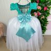 Essa coleção foi criada para transformar cada momento especial em um verdadeiro conto de fadas. Os vestidos combinam a intensidade do verde tiffany com a pureza e delicadeza do branco neve, resultando em peças que esbanjam charme, romantismo e sofisticação. Detalhes do Vestido Corpo em renda verde tiffany com mangas curtas, trazendo um ar clássico e elegante. Saia ampla em camadas de tule branco, que garante volume e movimento delicado. Cintura marcada com cinto em pérolas, acrescentando brilho e sofisticação. Tecido 100% poliester.Perfeita para: Festas de fim de ano (Natal e Réveillon); Batizados e celebrações religiosas; Aniversários temáticos; Ensaios fotográficos e ocasiões especiais. Uma coleção que une tradição e delicadeza, ideal para quem busca um visual atemporal, romântico e inesquecível para as pequenas princesas. Informações Importantes As medidas podem variar em até 2cm. Recomendamos sempre consultar a tabela de medidas antes da compra para evitar erros. Para um volume extra, indicamos o uso de saiote de armação, vendido separadamente na categoria Acessórios. Tiara e outros acessórios não acompanham o produto, mas estão disponíveis em nosso site. Calçado vendido separadamente, disponível na categoria Calçados As cores do produto podem sofrer variações de tonalidade conforme a configuração da tela do seu dispositivo.