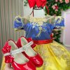 Encante-se com o Vestido Temático Princesa Branca de Neve Luxo Um modelo sofisticado e cheio de detalhes que trazem a magia dos contos de fadas para a sua princesa! Parte superior em azul royal com renda bordadas em dourados delicados e transparência nos ombros, trazendo charme e elegância. Saia amarela rodada com acabamento em renda bordada em dourado, criando um efeito de brilho e movimento encantador. Cinto vermelho com strass, que destaca a cintura e adiciona o toque clássico da Branca de Neve. Ideal para festas temáticas, aniversários, ensaios fotográficos ou para realizar o sonho de viver um dia de princesa. Tecido 100% poliester. Um vestido cheio de magia, pronto para transformar momentos especiais em memórias inesquecíveis. Informações Importantes As medidas podem variar em até 2cm. Recomendamos sempre consultar a tabela de medidas antes da compra para evitar erros. Para um volume extra, indicamos o uso de saiote de armação, vendido separadamente na categoria Acessórios. Tiara e outros acessórios não acompanham o produto, mas estão disponíveis em nosso site. Calçado vendido separadamente, disponível na categoria Calçados As cores do produto podem sofrer variações de tonalidade conforme a configuração da tela do seu dispositivo.