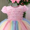 Tecido Tafeta: interno 100% poliester/ externo 100% poliamida/ tule 100% algodão ARCO IRIS, ARCO-IRIS, UNICORNIO, COLORIDO, CANDY, DOCES, JARDIM ENCANTADOConfeccionado em tecido misto possui forro em poliéster e algodão para não incomodar a criança e proporcionando um caimento incrível e sofisticado, possui gola redonda, comprimento médio, mangas curtas, possui elástico nas costas para melhor ajuste, acabamento com lindo laço na parte posterior do vestido completa o look dos sonhos! * Medidas podem variar em até 2cm * Caso queira o vestido mais armado, recomendamos o uso do saiote ou anágua de armação, disponível no nosso site na categoria acessórios. * Tiara vendida separadamente, disponível em nosso site na categoria acessórios. * Calçados vendido separadamente, disponível em nosso site na categoria calçados. * LEMBRANDO QUE PODERA HAVER VARIAÇÃO DE TONALIDADE DO PRODUTO DEPENDENDO DA TELA DO SEU DISPOSITIVO