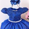 Confeccionado em tecido misto possui forro em poliéster e algodão para não machucar a criança e proporcionando um caimento incrível e sofisticado, possui gola redonda, comprimento médio, mangas curtas, possui elástico nas costas para melhor ajuste, acabamento com lindo laço na parte posterior do vestido completa o look dos sonhos!