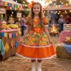 Vestido Mini Miss Junino Estrela do Sertão Laranja