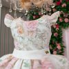 Vestido Luma Um modelo que exala delicadeza e encanto!O Vestido Luma é a escolha perfeita para meninas que amam um visual romântico e elegante. Com estampa floral suave em tons de rosa e creme, ele combina beleza e conforto em cada detalhe. O busto é ricamente adornado com pérolas aplicadas à mão, e as mangas trazem o toque clássico que toda princesa merece.Nas costas, o lastex proporciona ajuste confortável, enquanto o laço volumoso finaliza o look com charme e sofisticação. Destaques do modelo: Estampa floral exclusiva Busto com pérolas delicadas Manga com acabamento impecável Lastex nas costas para conforto Tecido leve e caimento perfeito Um vestido cheio de graça, ideal para festas, aniversários e ocasiões especiais! Informações Importantes As medidas podem variar em até 2cm. Recomendamos sempre consultar a tabela de medidas antes da compra para evitar erros. Tecido Externo 100% poliamida/ Tecido Interno 100% poliester Para um volume extra, indicamos o uso de saiote de armação, vendido separadamente na categoria Acessórios. Tiara e outros acessórios não acompanham o produto, mas estão disponíveis em nosso site. Calçado vendido separadamente, disponível na categoria Calçados As cores do produto podem sofrer variações de tonalidade conforme a configuração da tela do seu dispositivo.