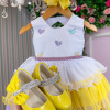 Vestido Vila Lele Bebe Lolo Saia Amarelo e Lilas