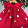 Vestido Vila Lele Jardim das Borboletas Baby Liz Vermelho